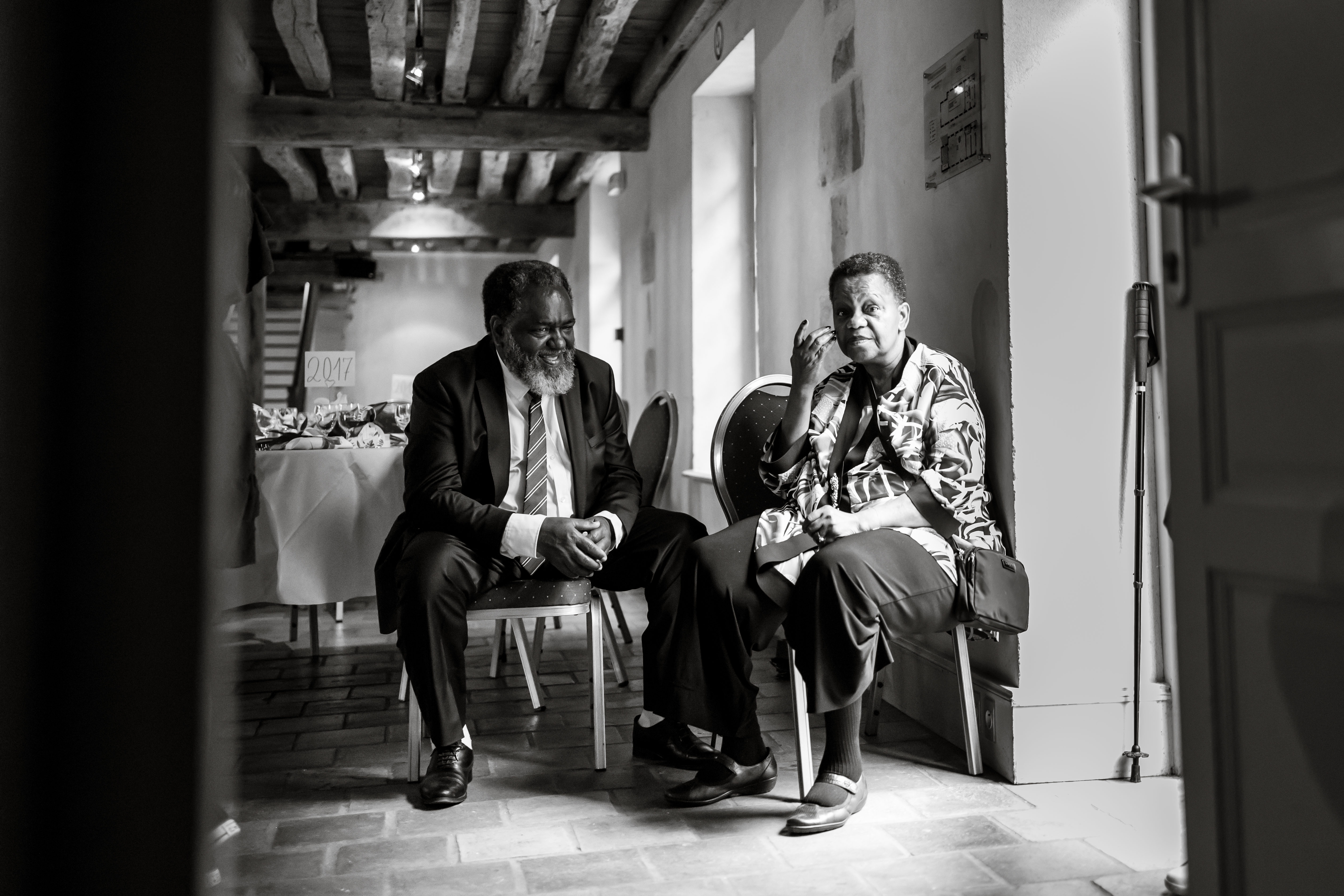 Les invités sont tous présents mais l’attente est longue, le Pasteur qui vient de Paris, s’est visiblement perdu. Un des invités finit par sauter dans sa voiture pour voler à sa rescousse.