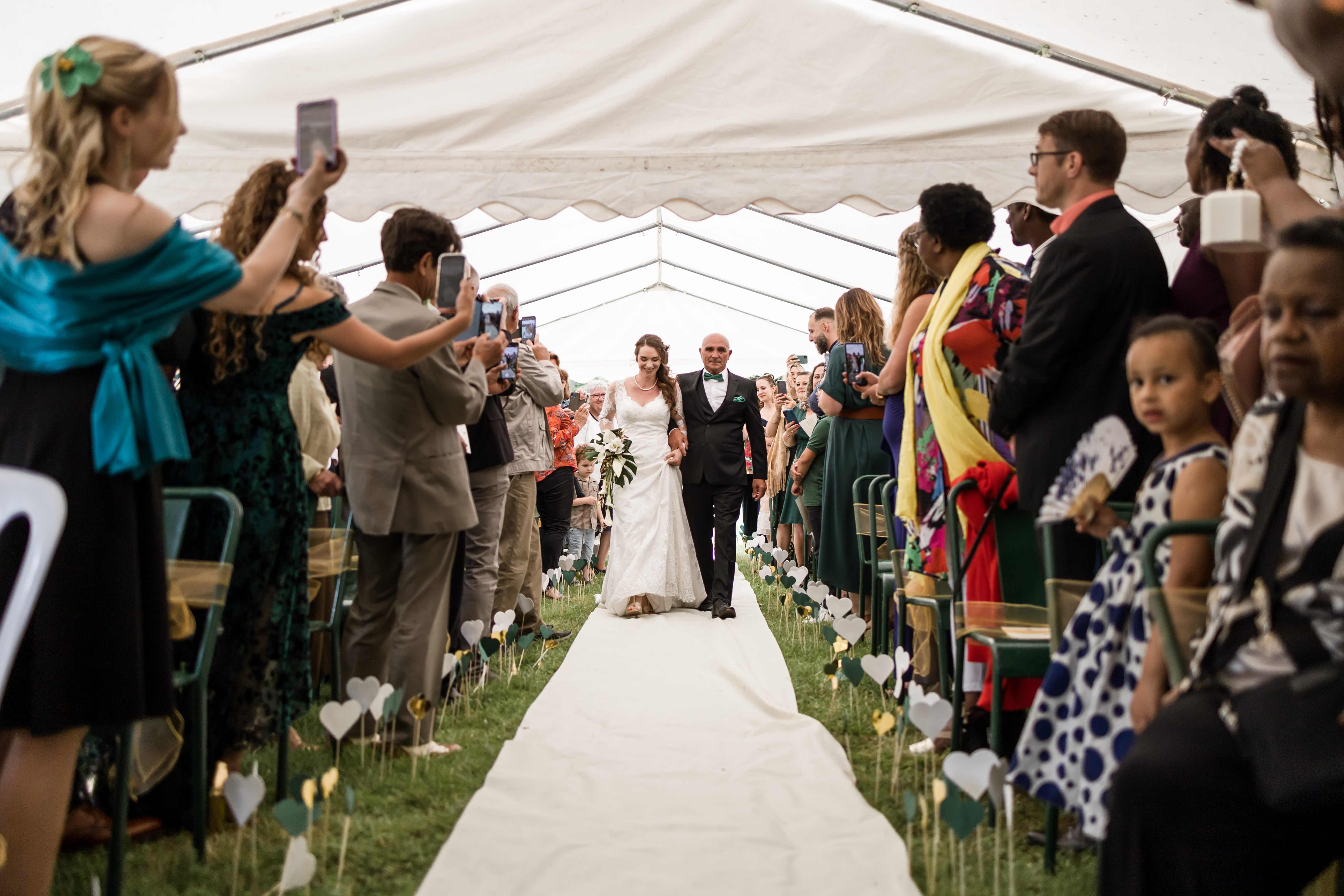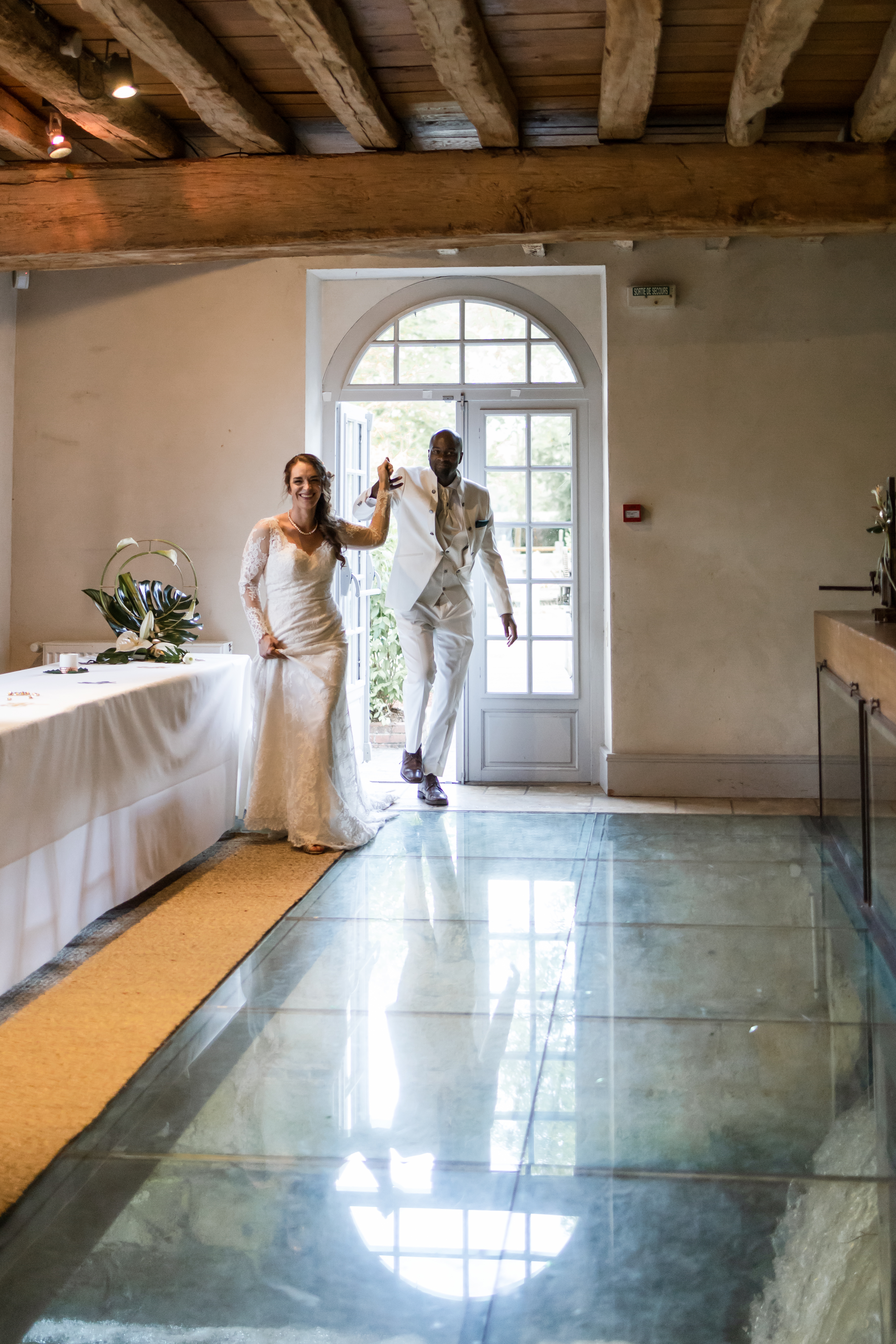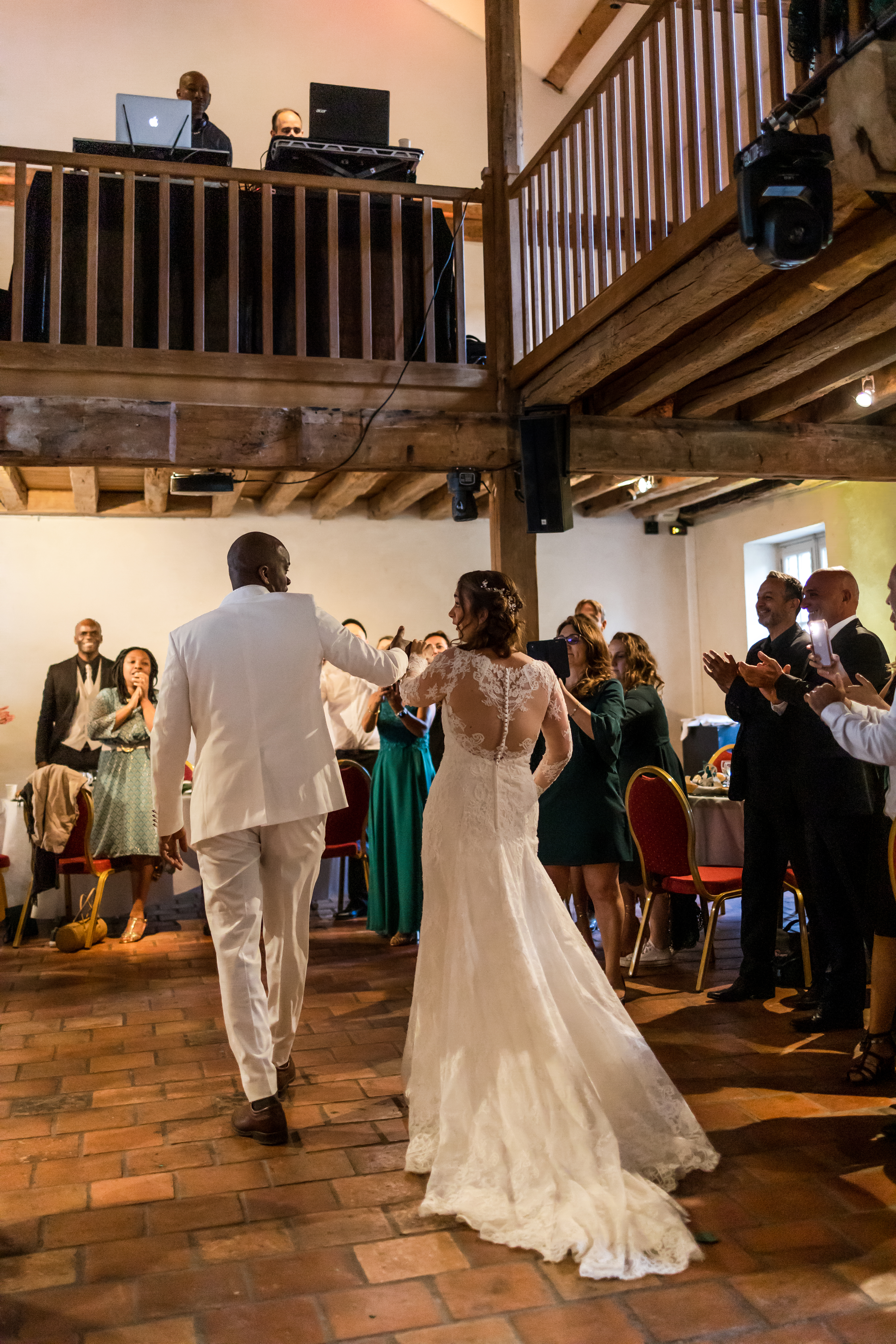 Pendant que les invités s’installent gentiment à leur place, les mariés et moi nous extirpons le temps d’un instant. Quelques photographies plus tard, c’est à leur tour d’entrer dans la salle sous les cris de joies de leurs familles, de leurs amis… et de leurs enfants.