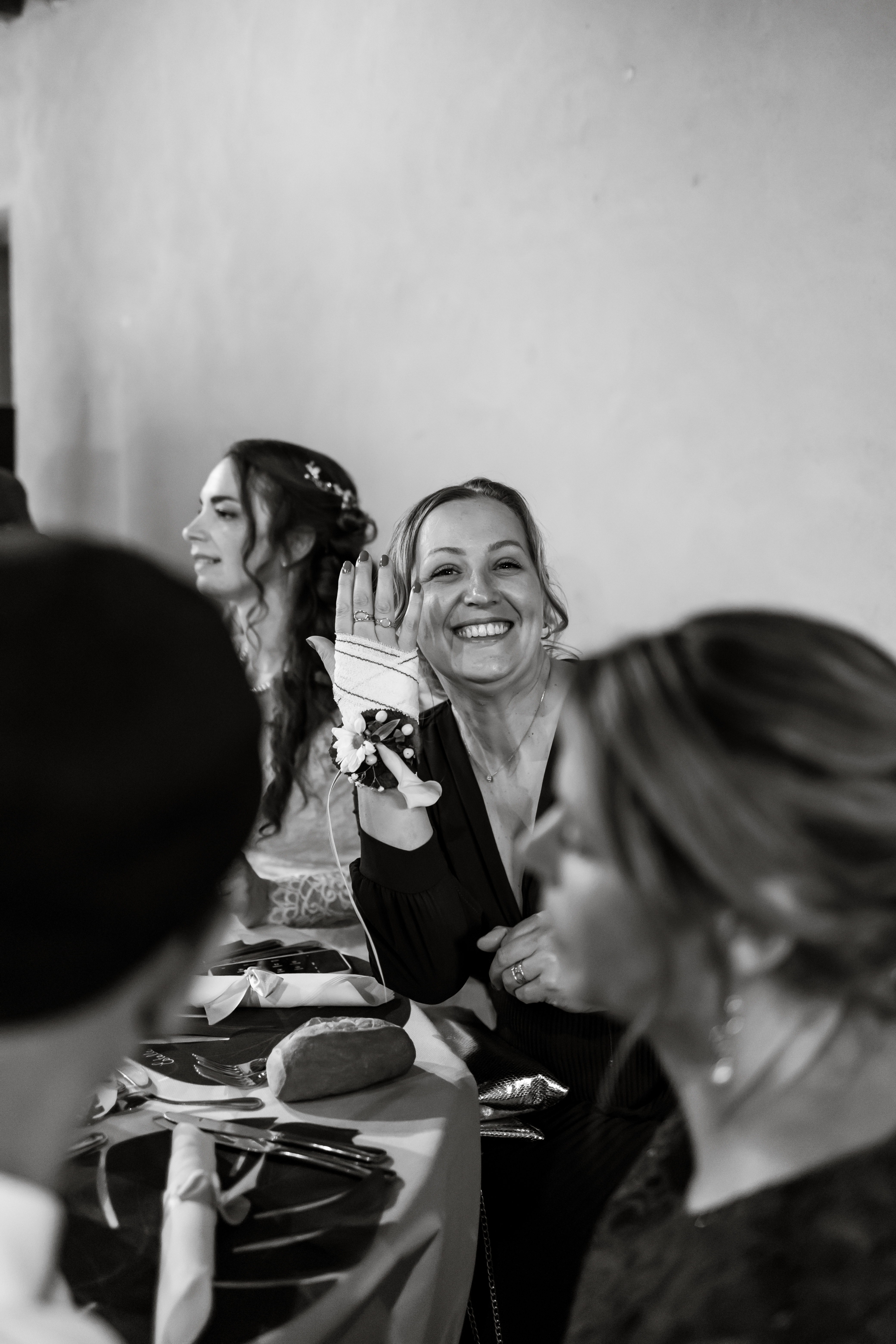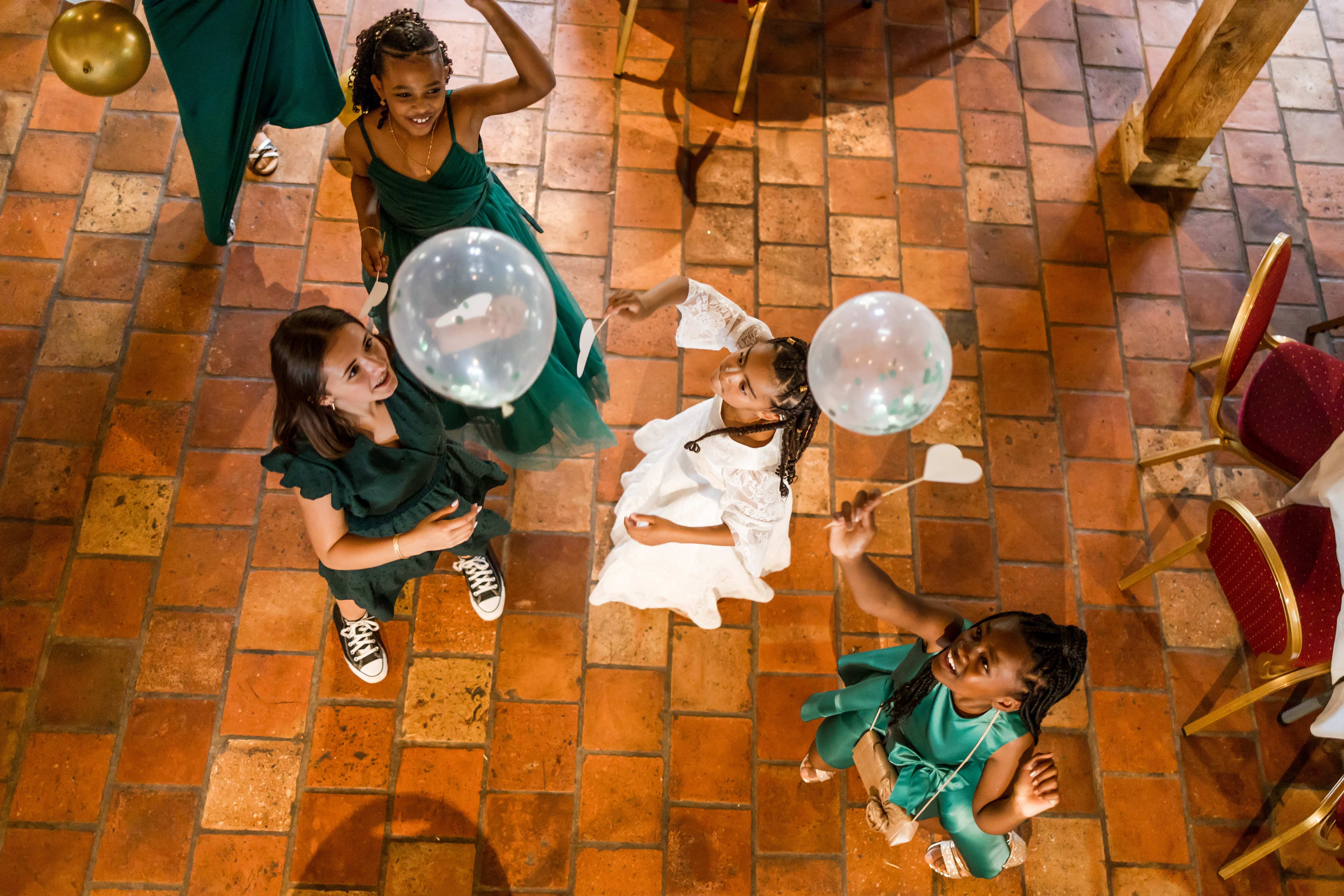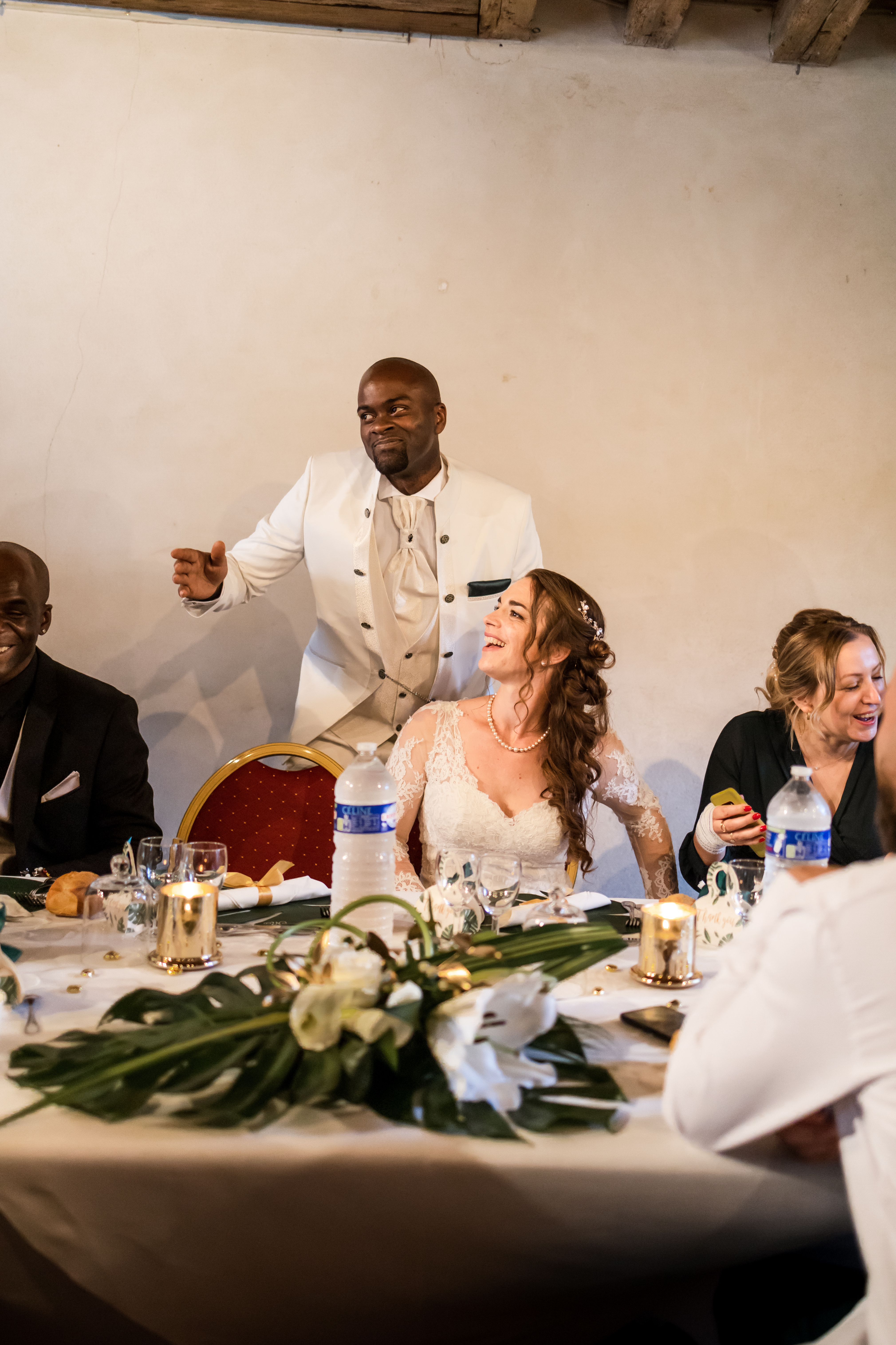 Pendant que les invités s’installent gentiment à leur place, les mariés et moi nous extirpons le temps d’un instant. Quelques photographies plus tard, c’est à leur tour d’entrer dans la salle sous les cris de joies de leurs familles, de leurs amis… et de leurs enfants.