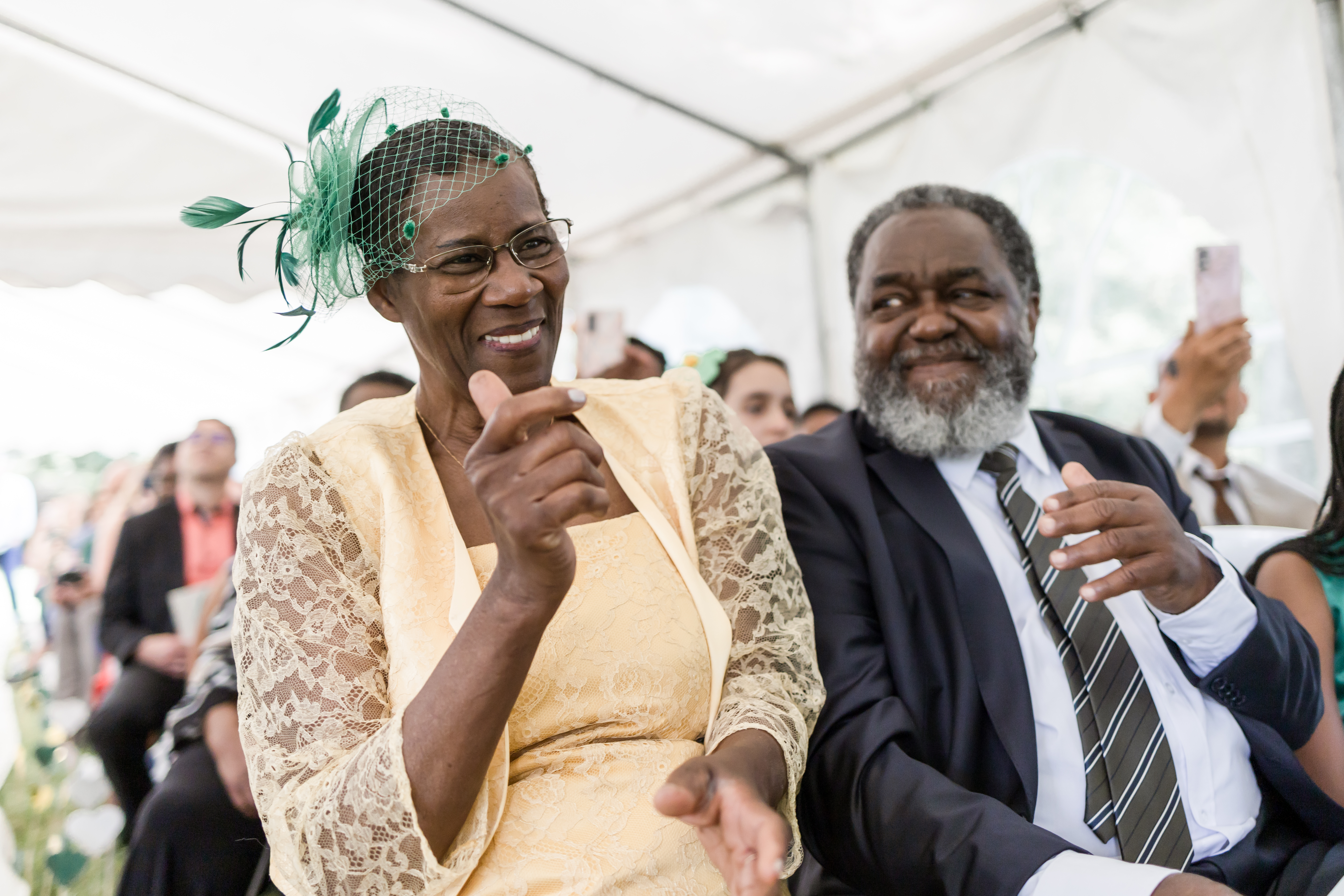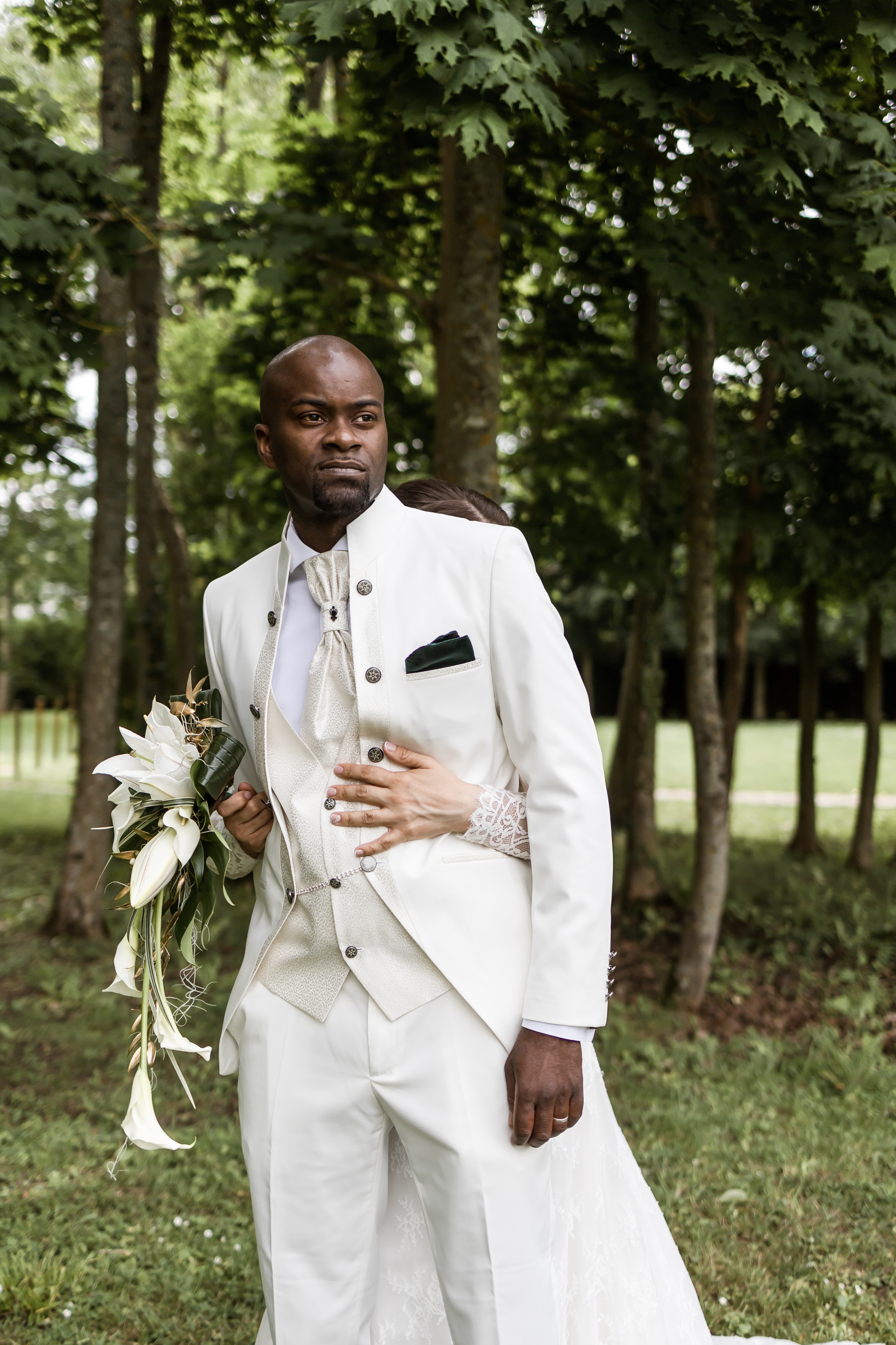 Dans un thème “exotique” pour rappeler les origines de Nicolas et dans des couleurs sublimes “vert bouteille, blanc et doré”. Le dress code à été impeccablement respecté par leurs invités et quel plaisir de les voir dans cette unité.