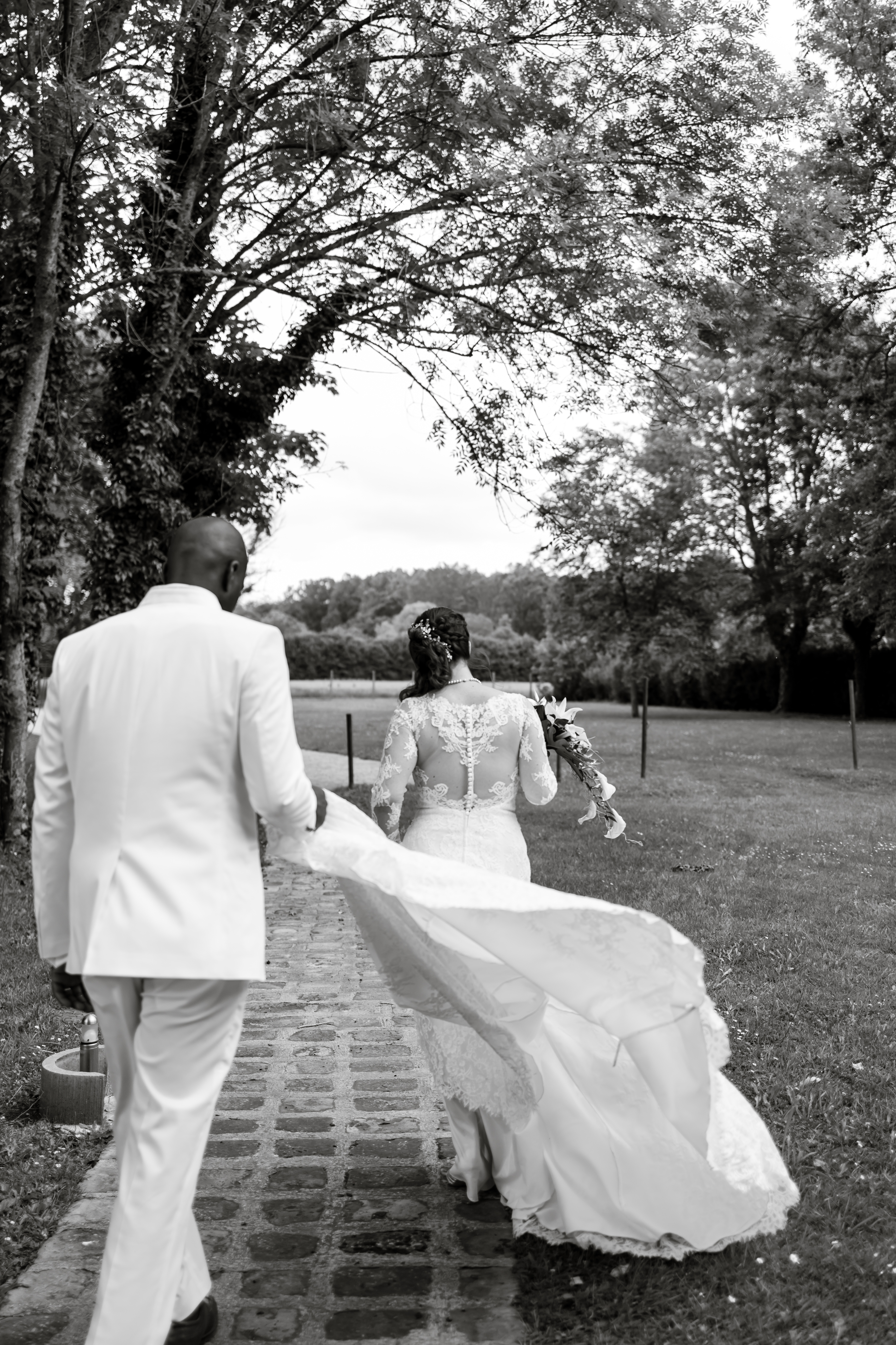 Alors que la fête bat son plein, que la pression de cette journée s’est envolée des épaules des mariés, que les sourires émus ont fait place au visage espiègle, il est temps pour moi de quitter le Moulin avant de les revoir bien vite.