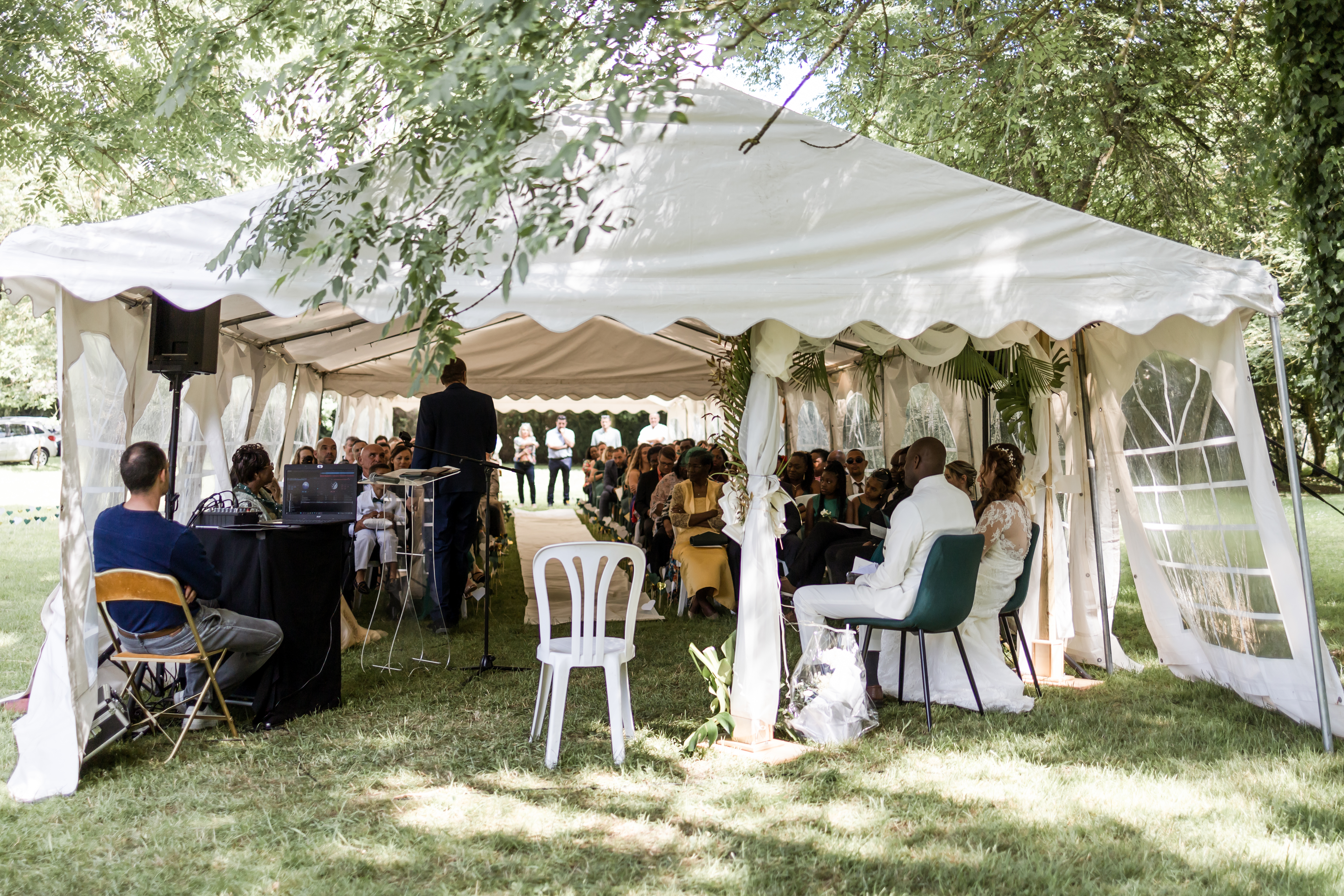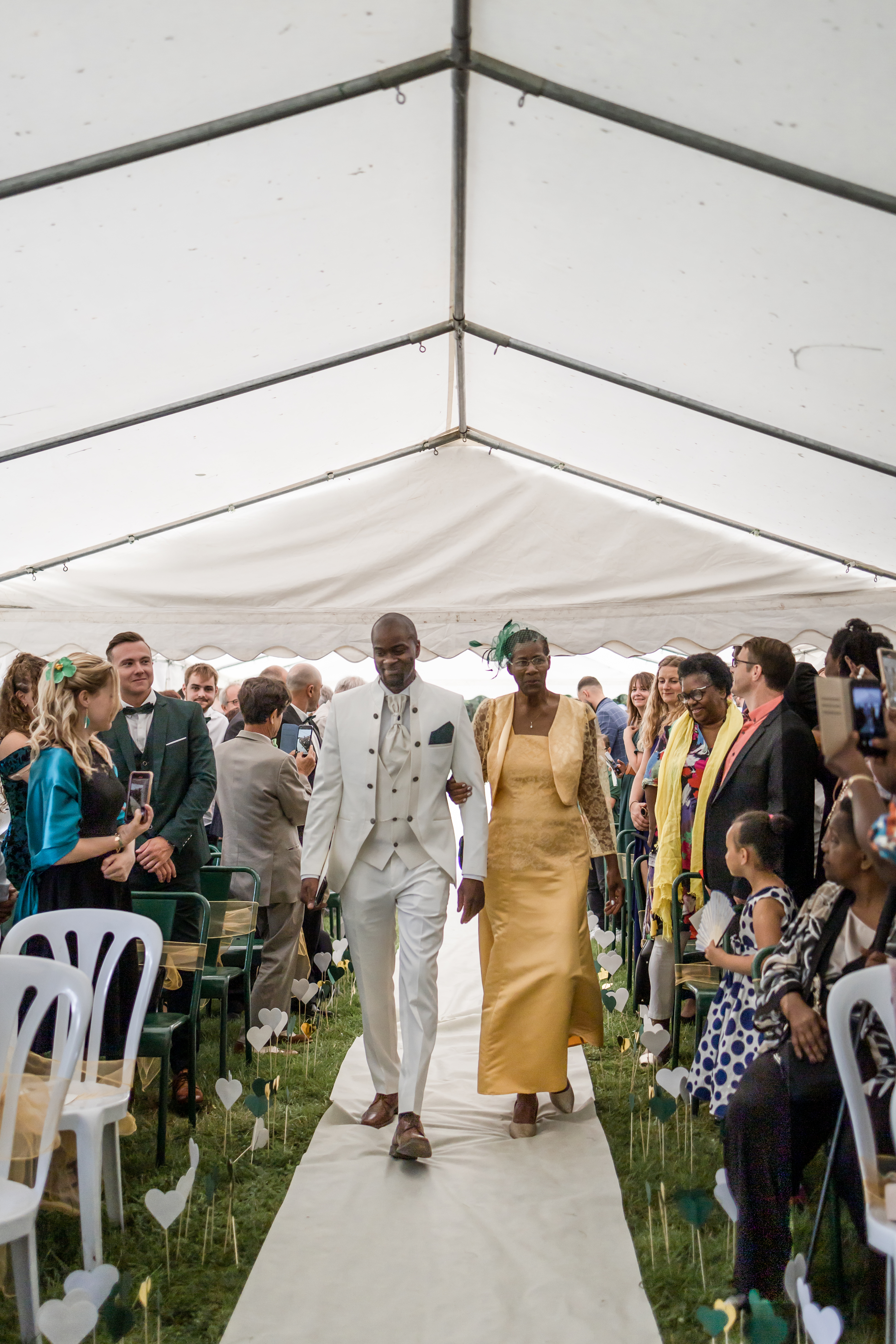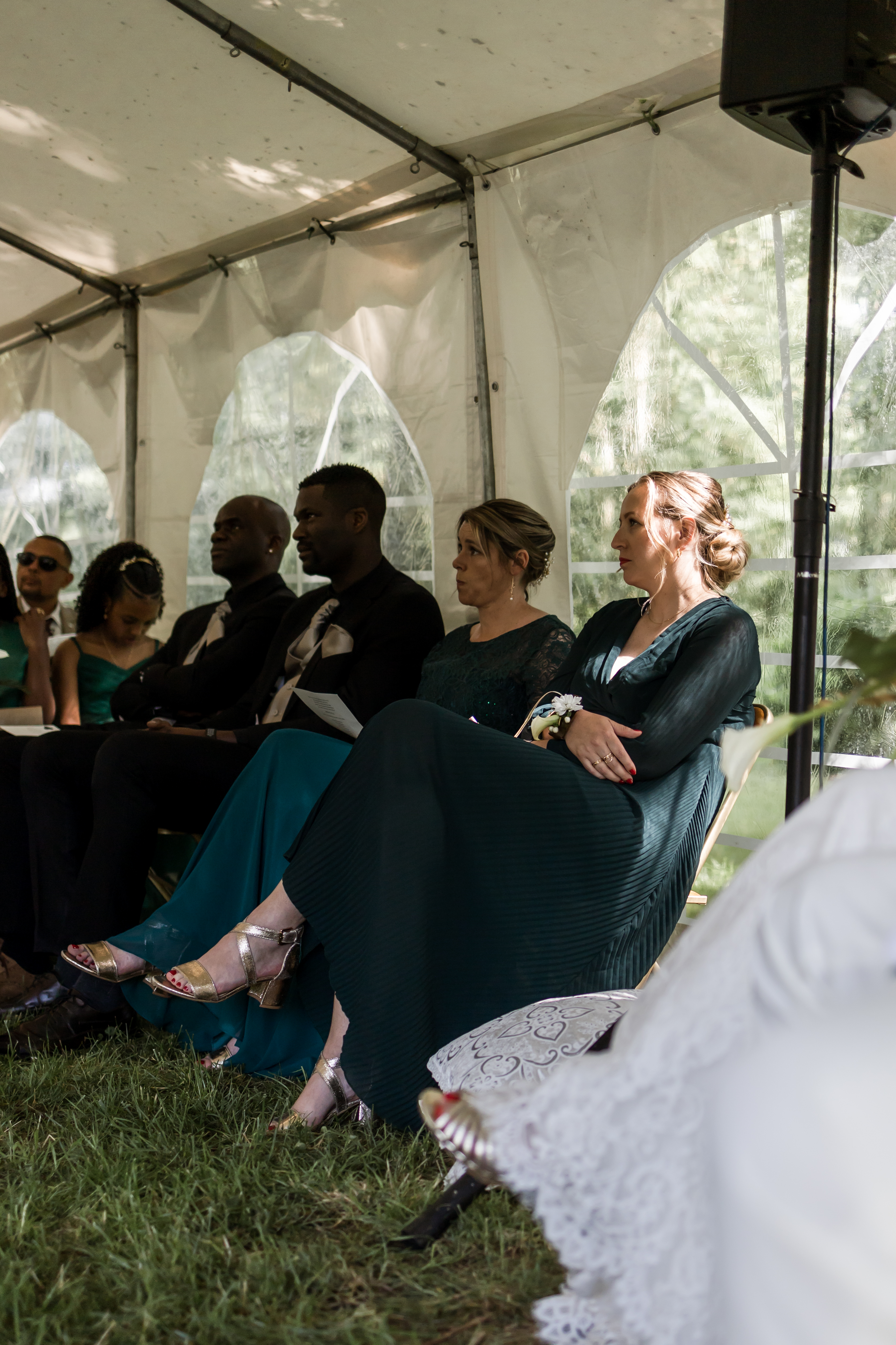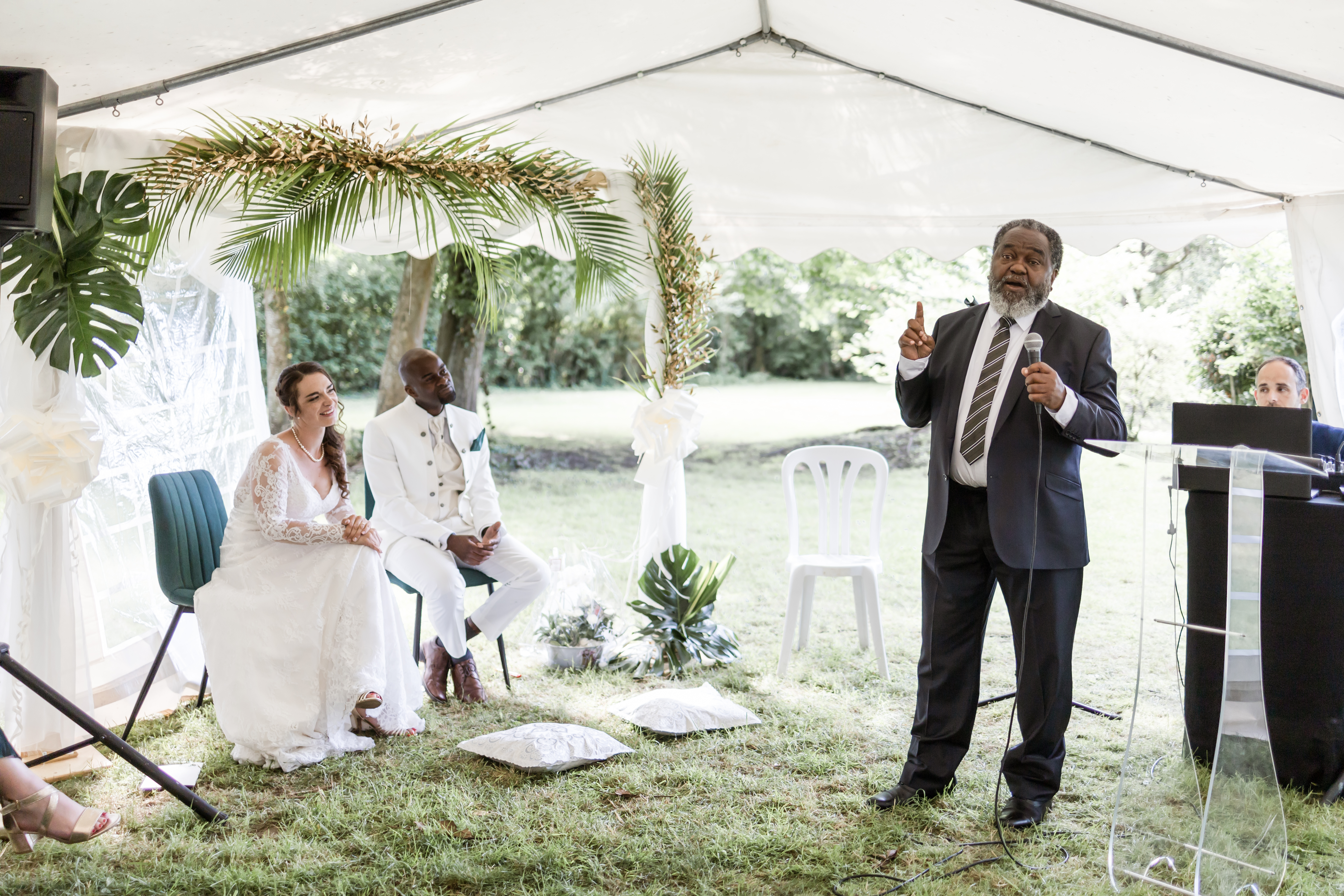 Le Pasteur est enfin là, son sourire est contagieux. Aussitôt arrivé, aussitôt pardonné ! Il sait y faire. La cérémonie se déroule dans une humeur incroyable, entre rires et larmes, entre slam du marié et morceau de Saxophone, avec les discours des uns tous plus émouvants et drôles de celui des autres, dans une joie incommensurable. Ce moment est comme suspendu.