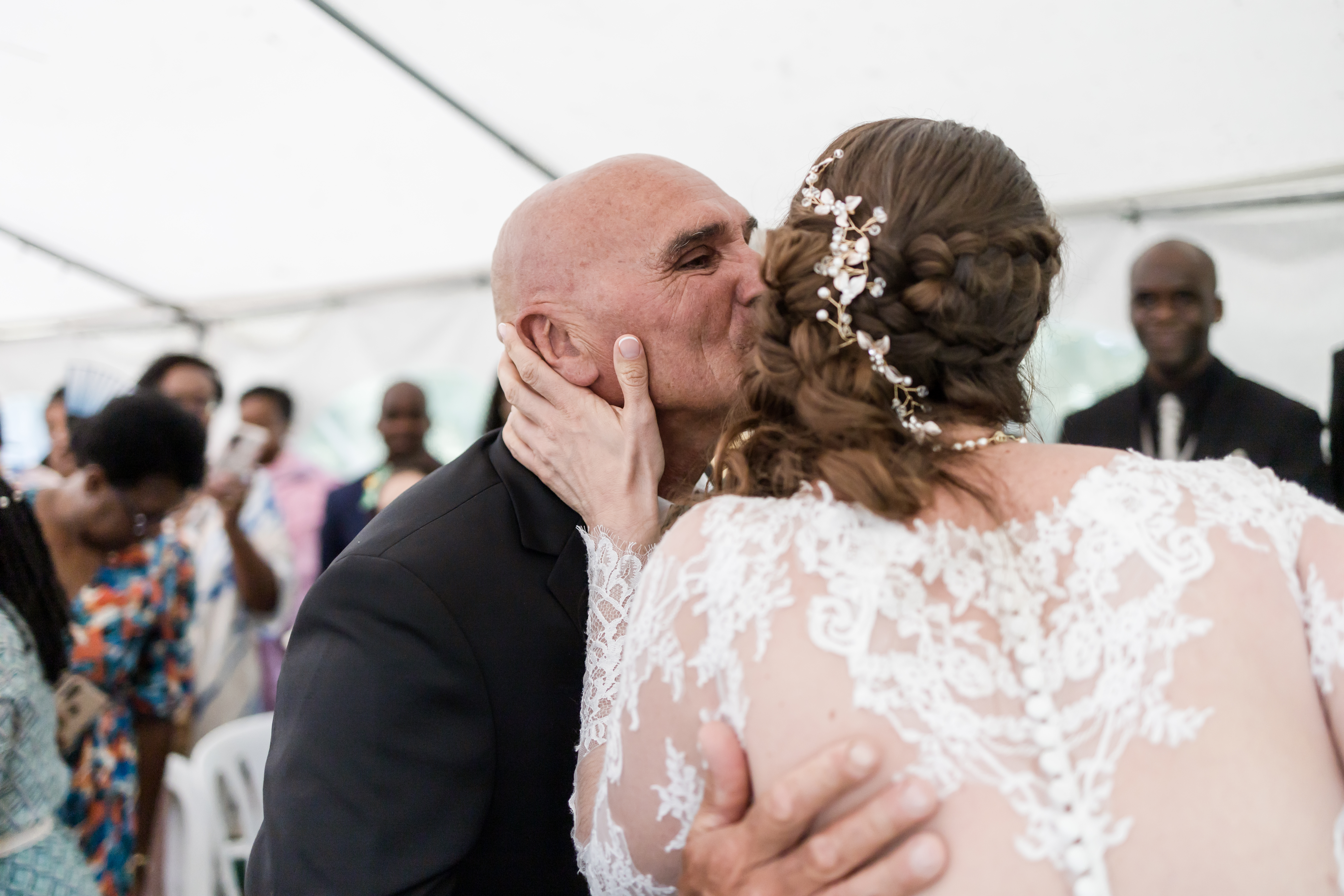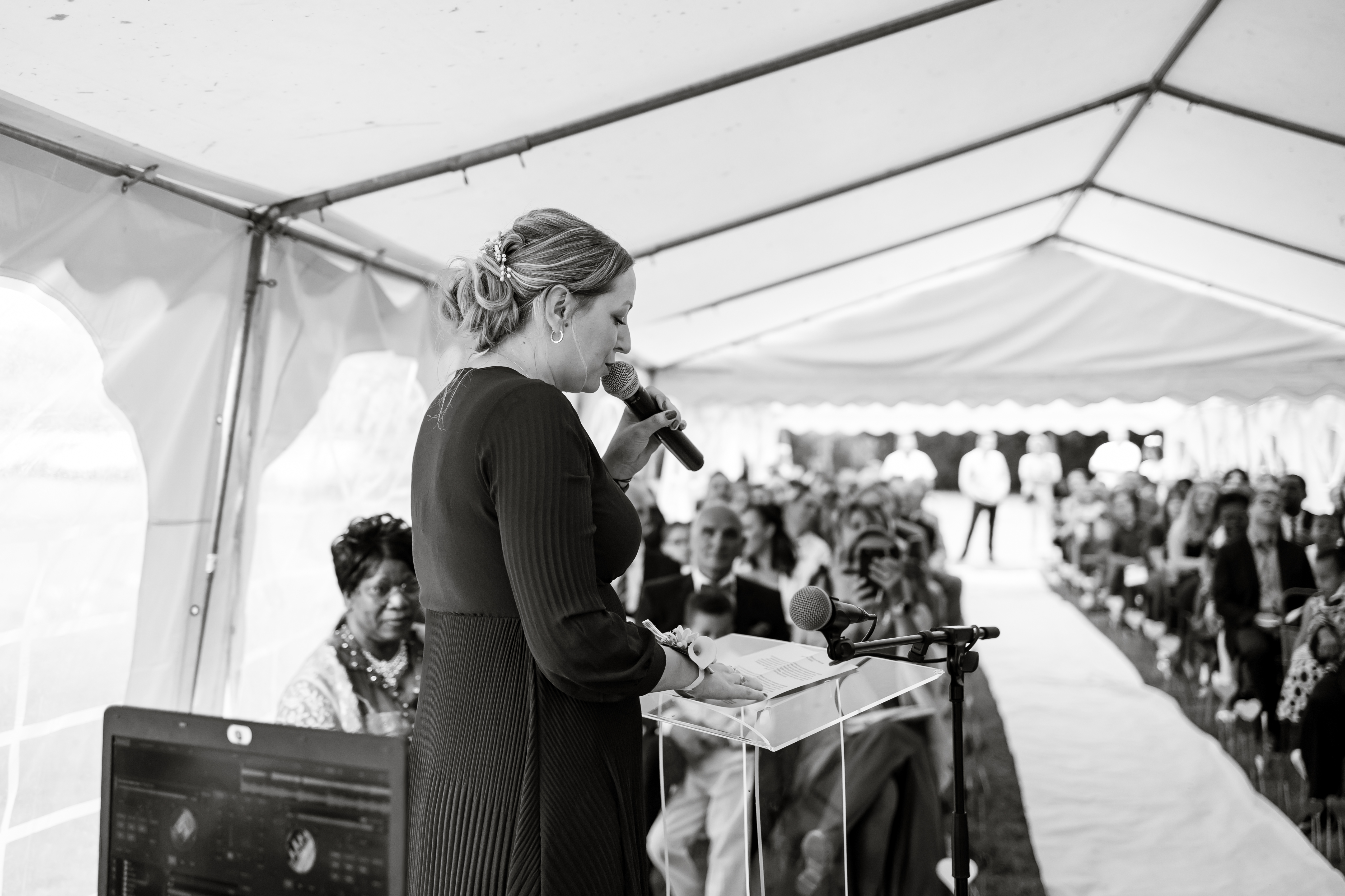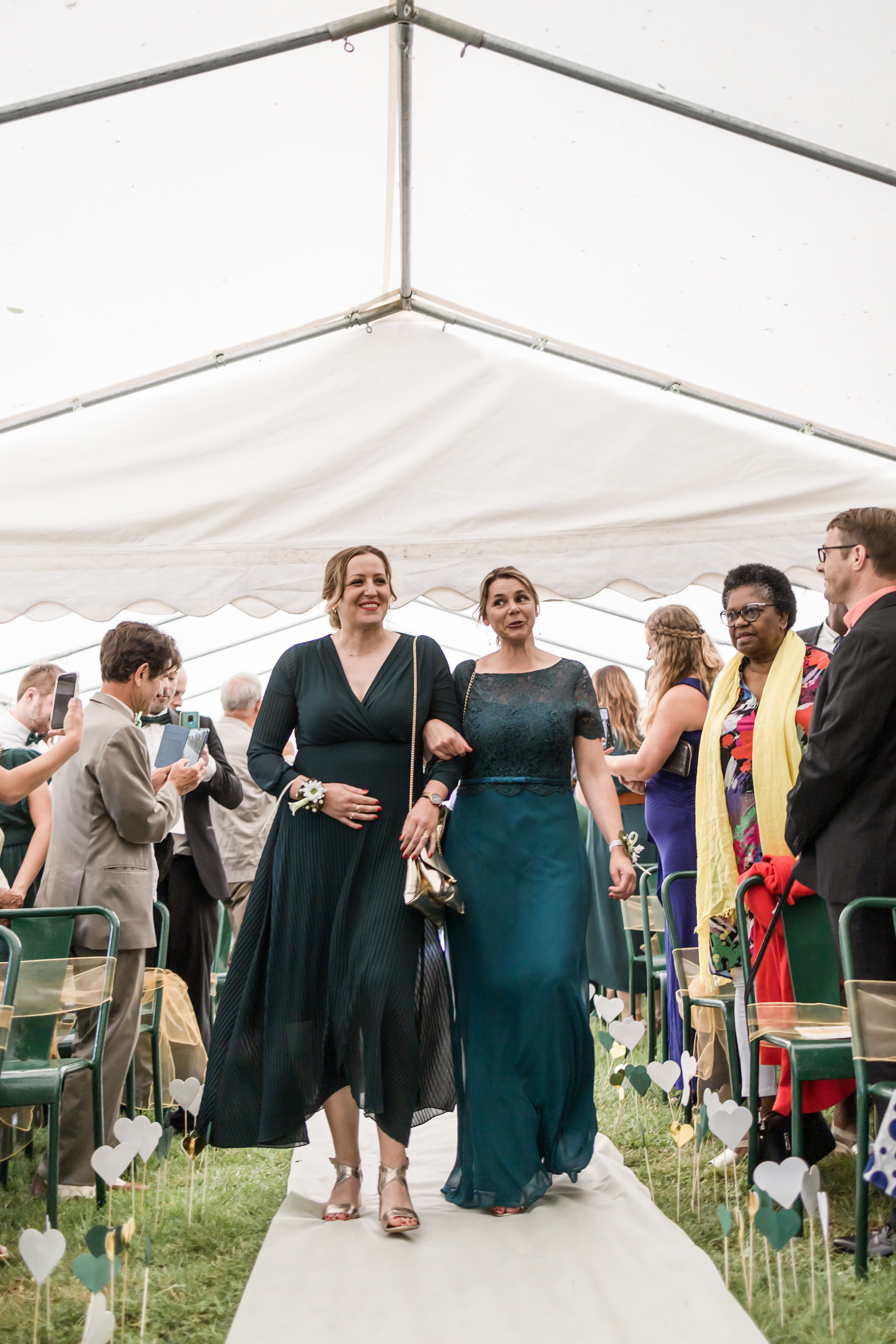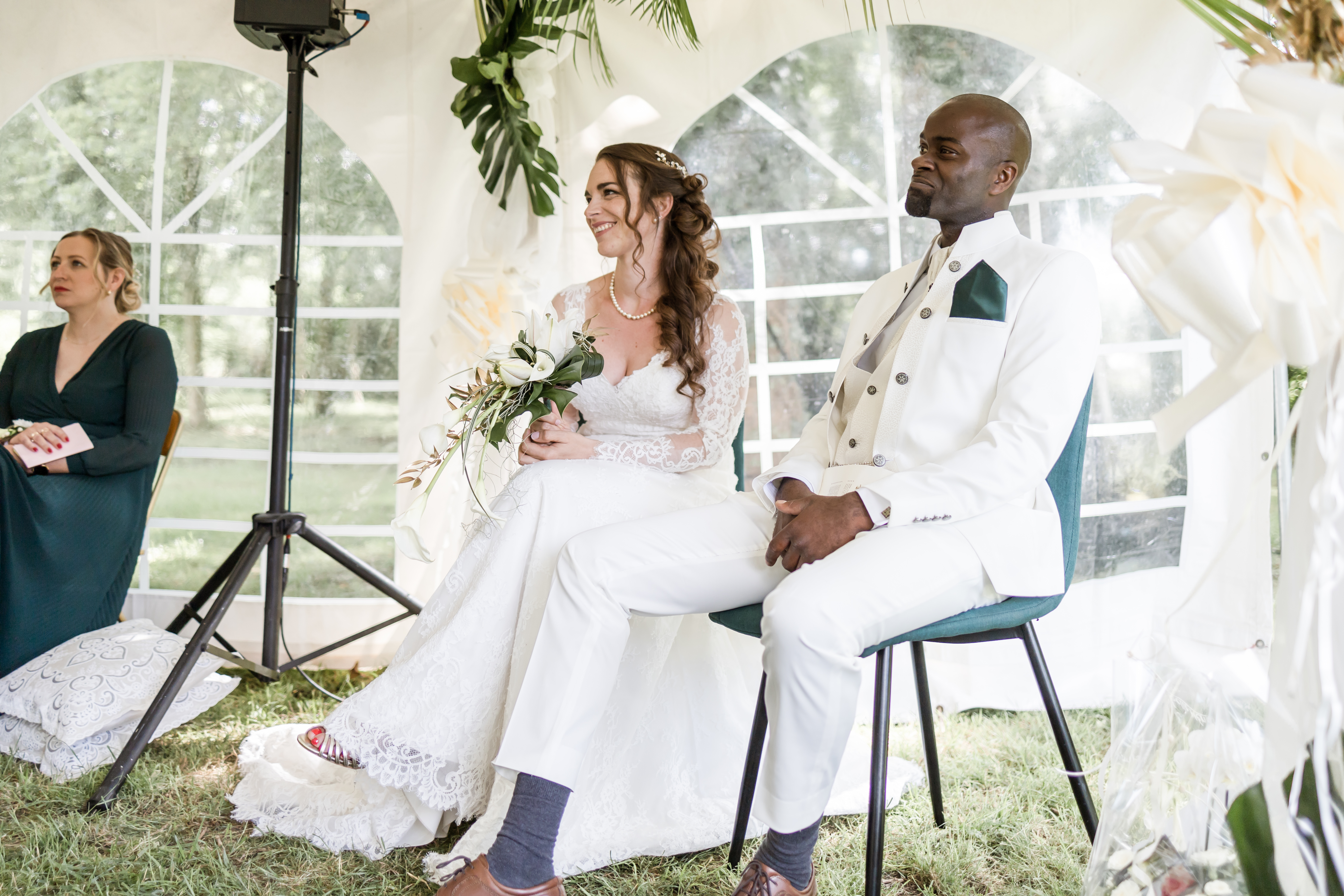 Le Pasteur est enfin là, son sourire est contagieux. Aussitôt arrivé, aussitôt pardonné ! Il sait y faire. La cérémonie se déroule dans une humeur incroyable, entre rires et larmes, entre slam du marié et morceau de Saxophone, avec les discours des uns tous plus émouvants et drôles de celui des autres, dans une joie incommensurable. Ce moment est comme suspendu.