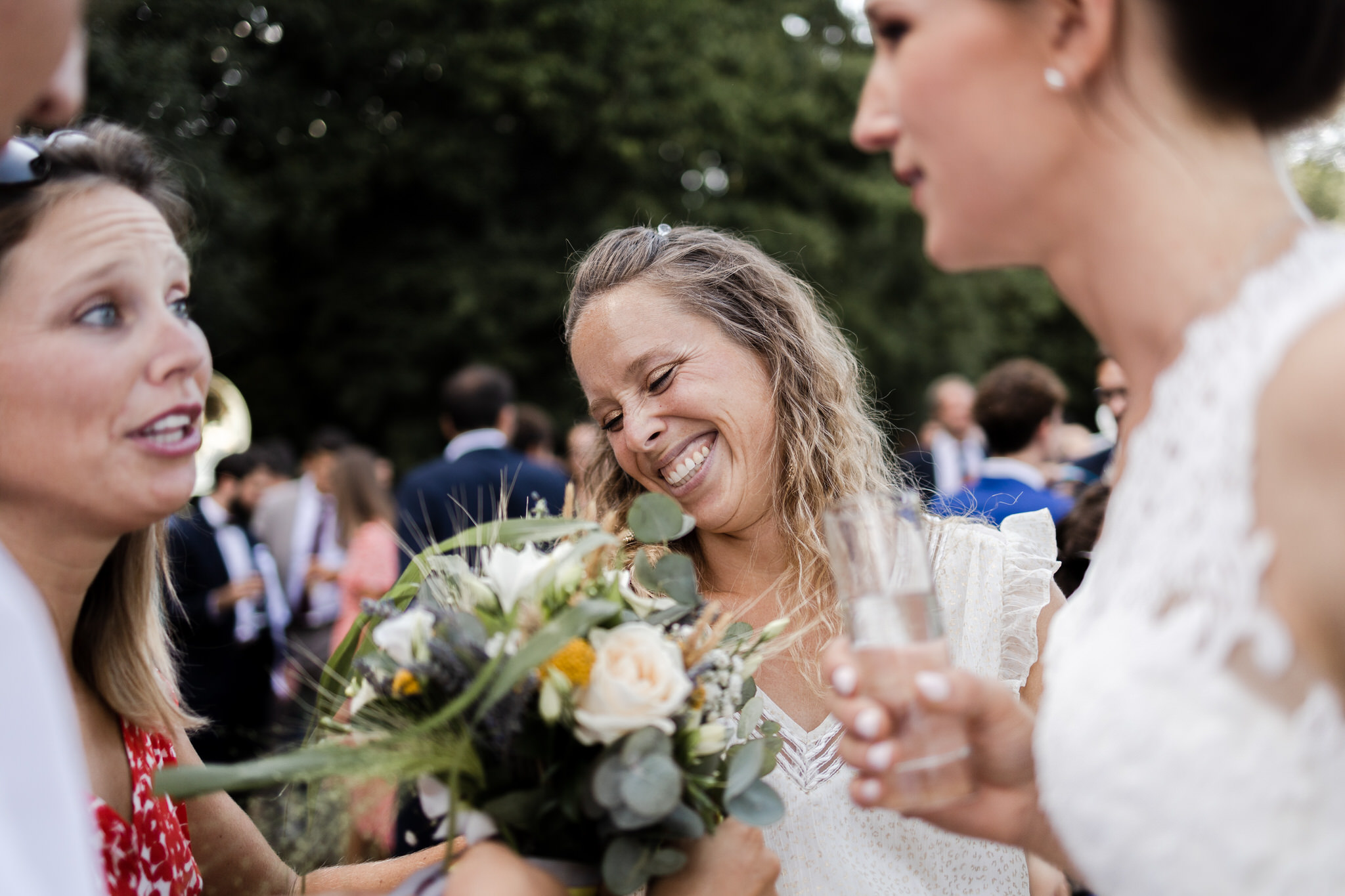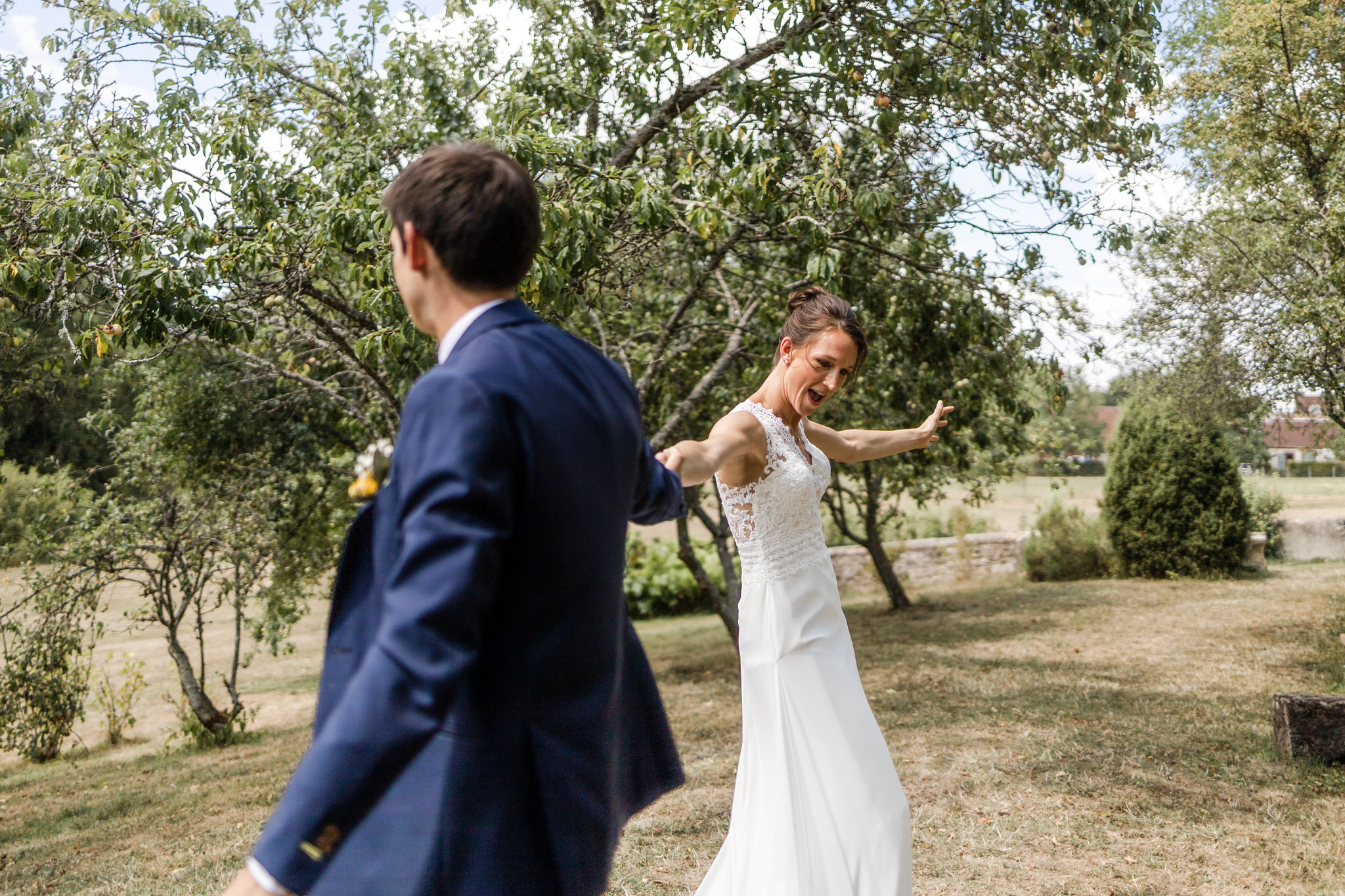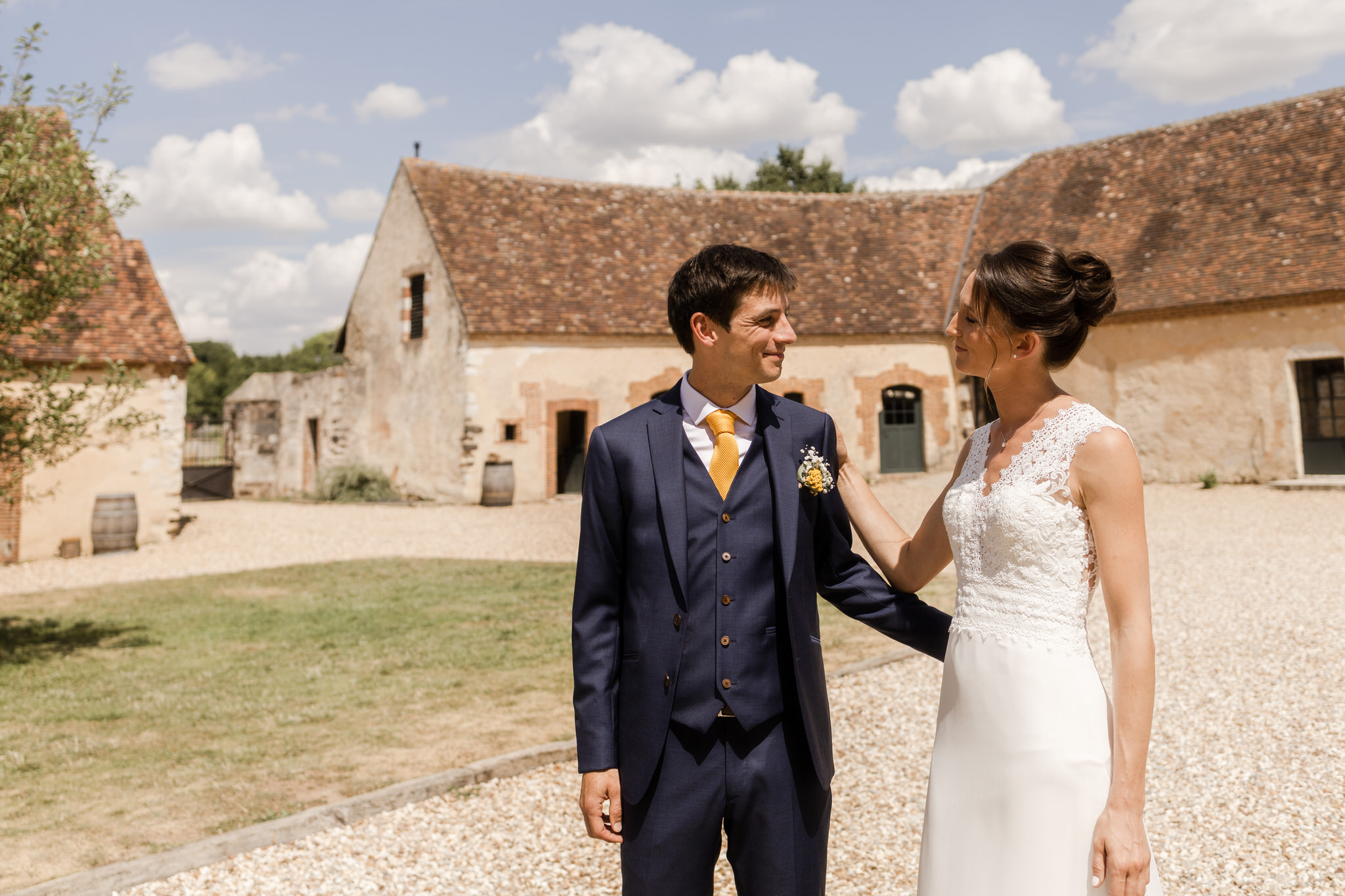 En arrivant au Domaine de Montireau ce matin là, la bonne humeur résonne au travers des murs avant même d’avoir franchi le seuil de la porte. La météo est de notre côté, seul quelques petits nuages parcours le ciel bleu azur. Les oiseaux semblent d’aussi bonne humeur que les mariés qui répète leurs voeux dans le salon.