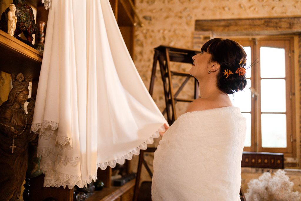Pour la partie préparatifs, Margaux (@margauxmakeup.frth) a fait un maquillage incroyable, c’était naturel, travaillé, et tellement bien fait. De son côté Laurence (L’artisane – Le Mans) à gérer la partie coiffure, sobre, chic, avec une touche de peps, c’est exactement ce que je voulais, bravo.