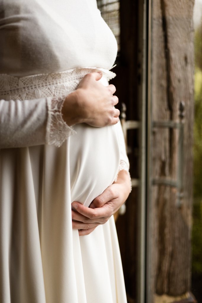 Hélène Lajoinie, créatrice de robe de mariée a sublimé Maud. Pour cette occasion, il y avait en effet un défi supplémentaire avec une grossesse évoluant chaque jours un peu plus.